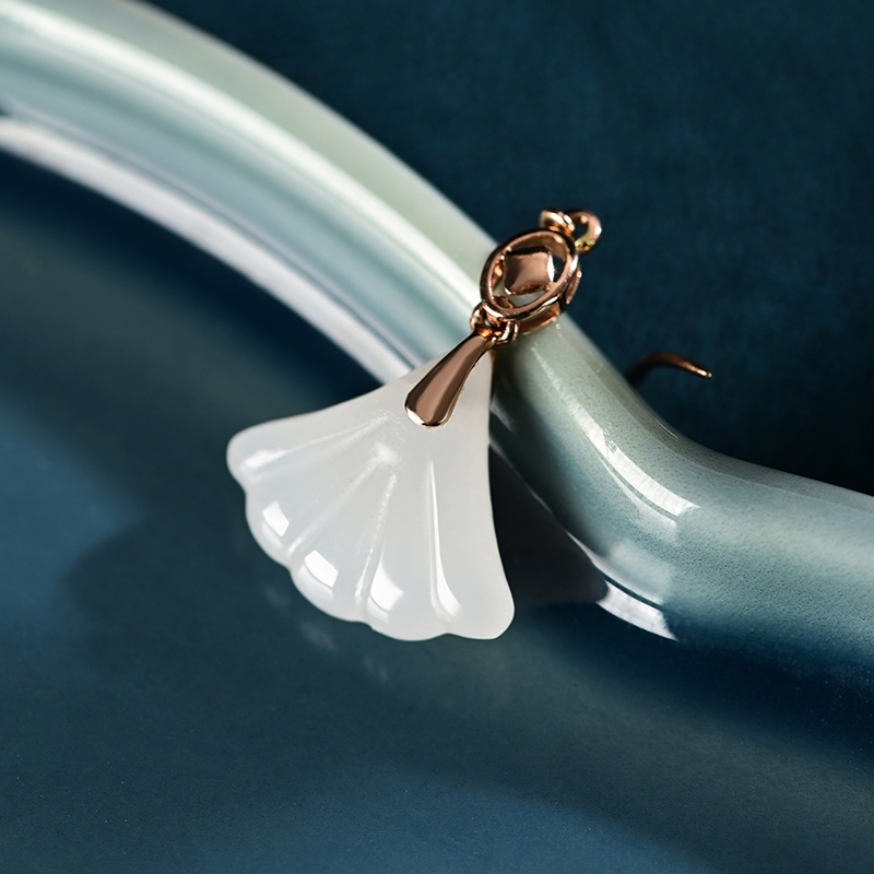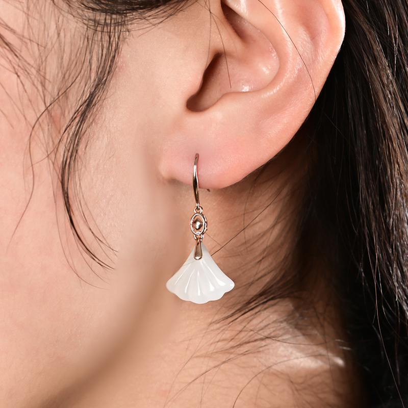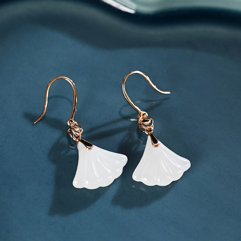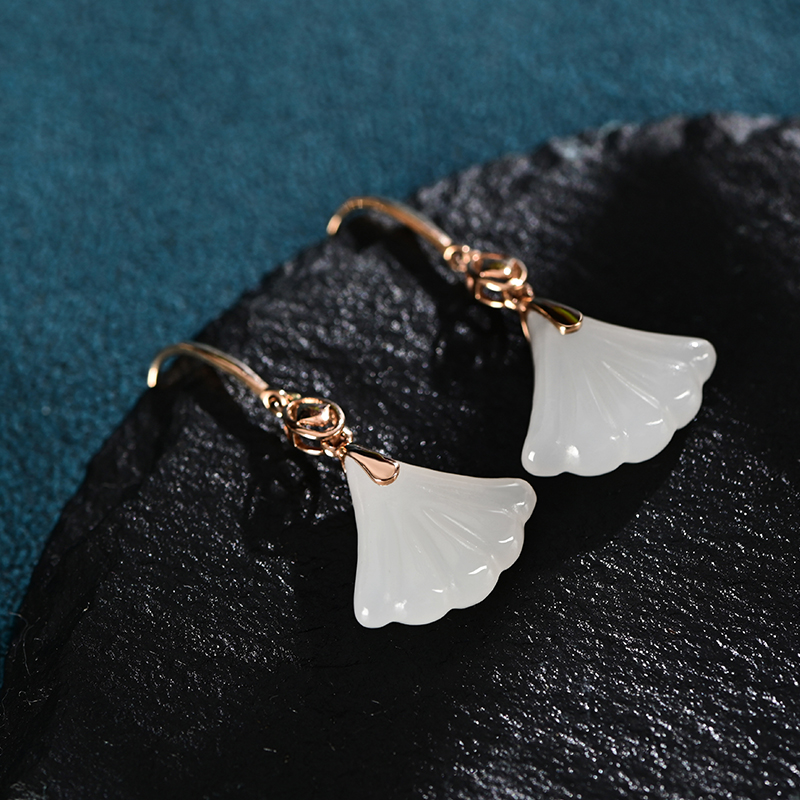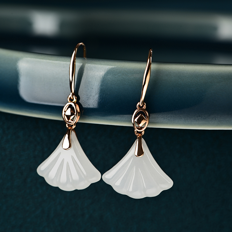 和田白玉金镶耳饰