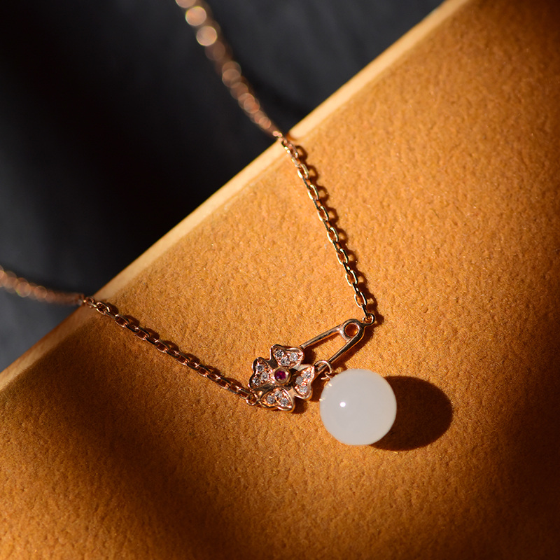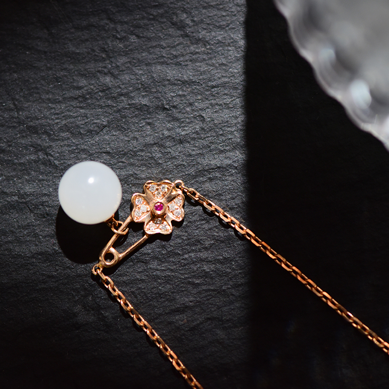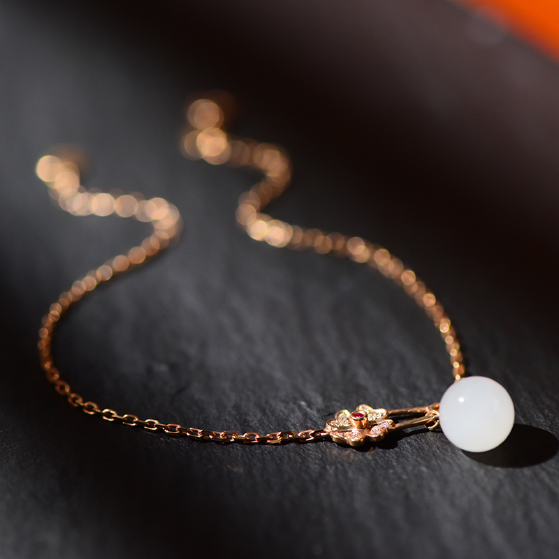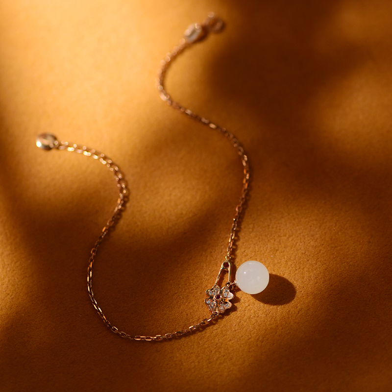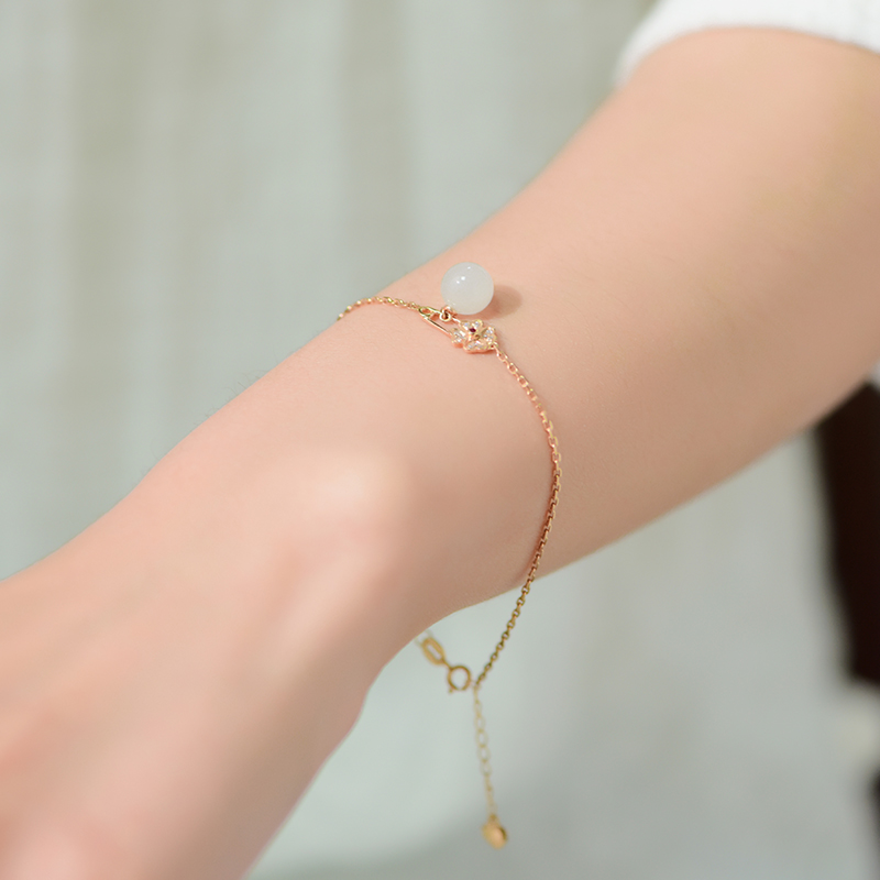 K红金镶白玉手链